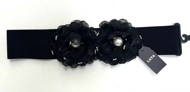 Fekete Gyöngyös Tüll Virágos Gumis Öv